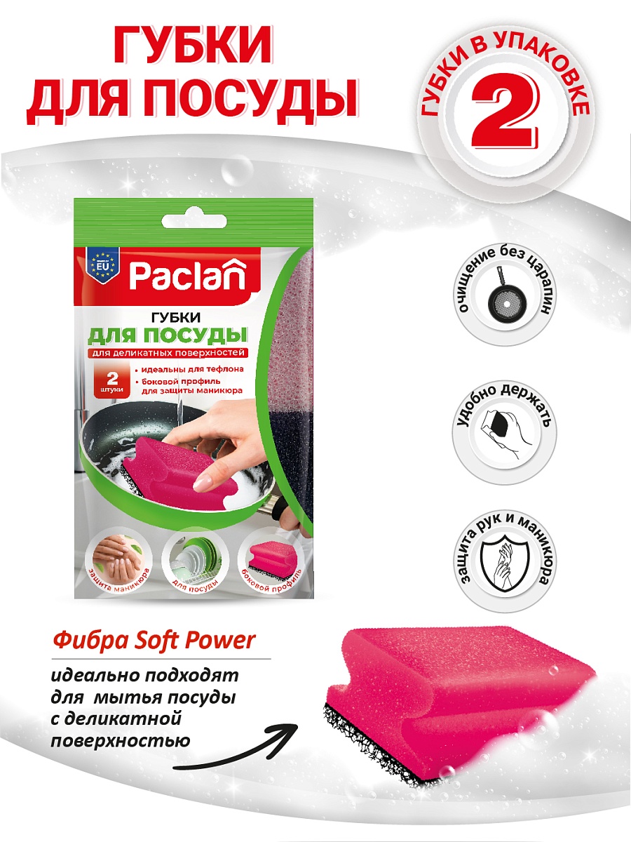 Губки Paclan Practi Soft power идеально подходят для мытья посуды.