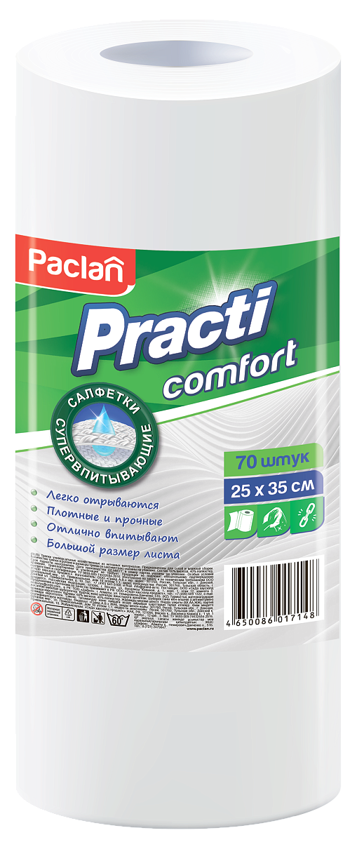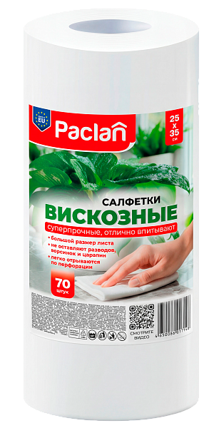 - Салфетки вискозные в рулоне Paclan Practi Comfort, 25х35 см, 70 шт.