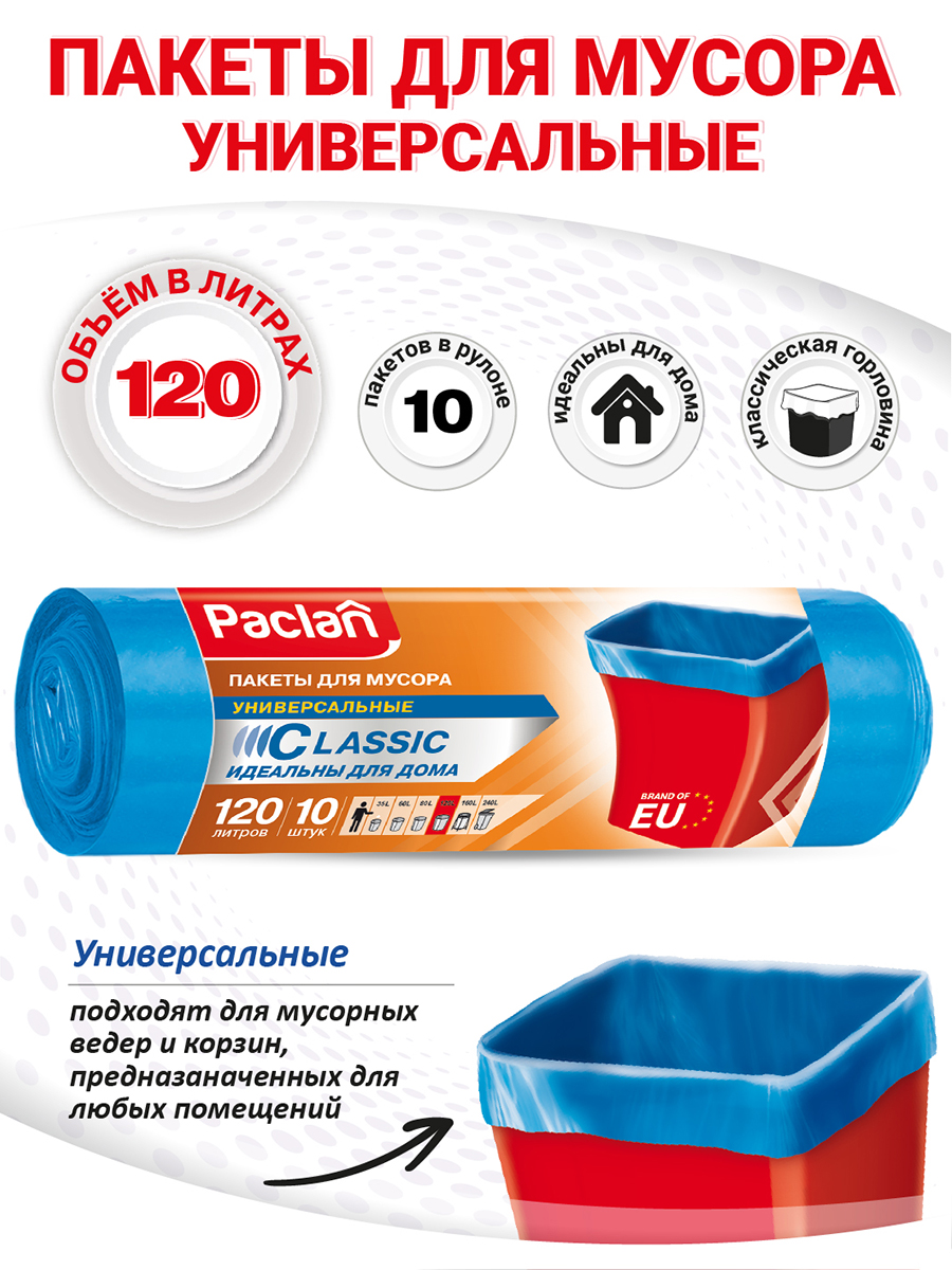 - Пакеты для мусора Paclan Classic 120 л, 10 шт.