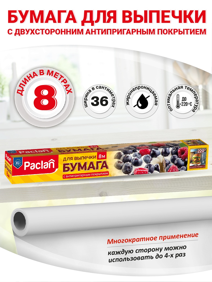 Бумага для выпечки Paclan Classic, 8 м х 36 см NEWПодробнее
