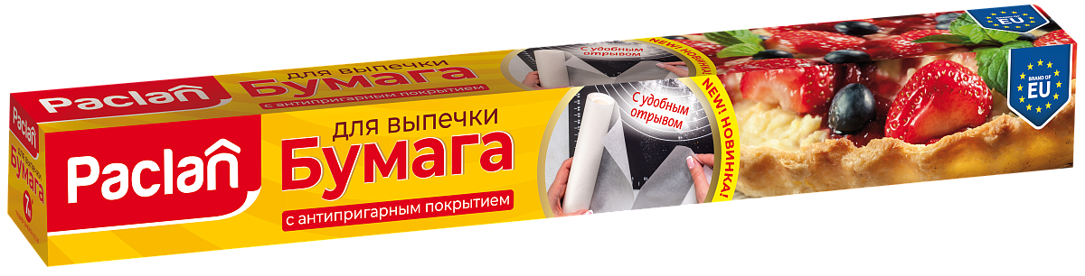 - Бумагу для выпечки Paclan производят из 100% целлюлозы со специальными добавками, придающими бумаге повышенную прочность