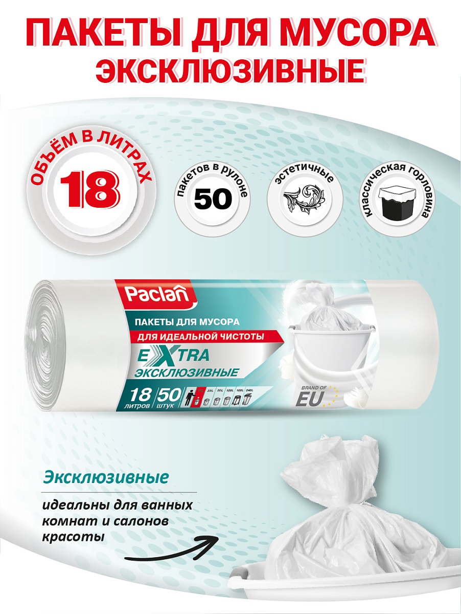 - Пакеты для мусора Paclan Extra 18 л, 50 шт.