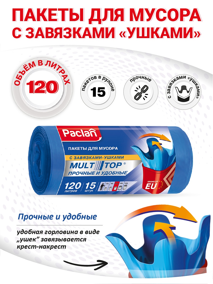 - Пакеты для мусора Paclan Multitop 120 л, 15 шт.