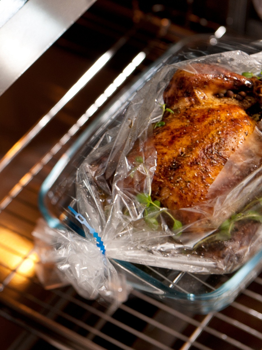 - При использовании пакетов для запекания, посуда и духовка остаются чистыми, это существенно экономит время и моющие средства