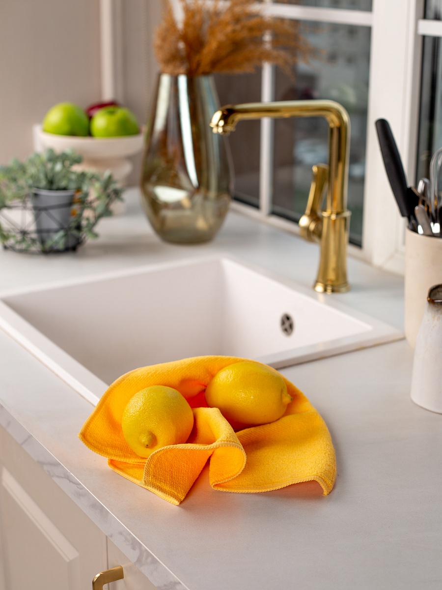 Салфетка из микрофибры Paclan De luxe 2 в 1 прекрасно подходит для комплексной уборки кухни.
