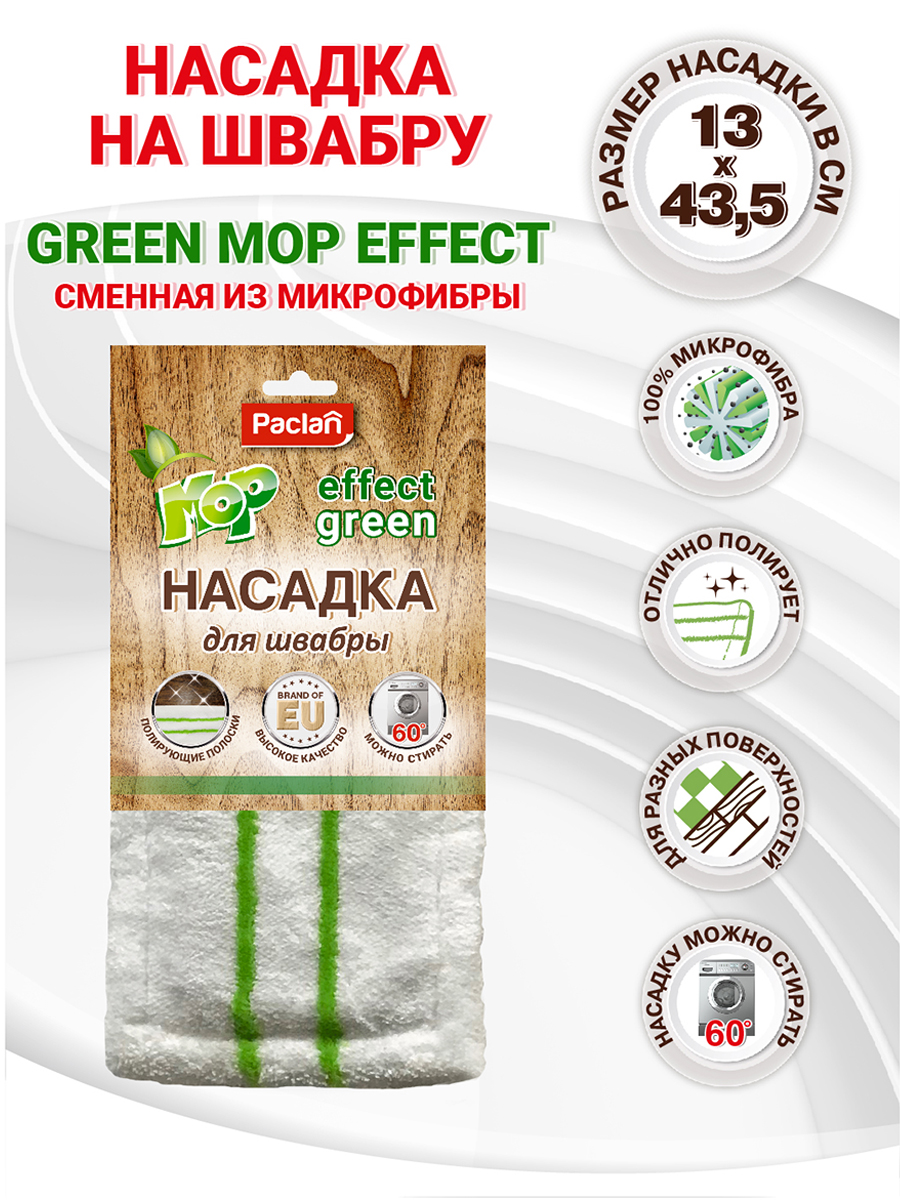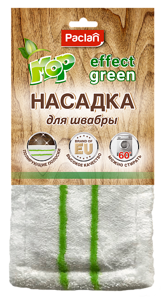- Насадка сменная из микрофибры с полирующими полосками для швабры Paclan Effect Green MOP, 1 шт.