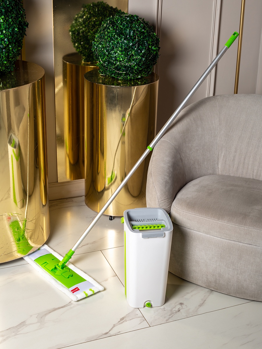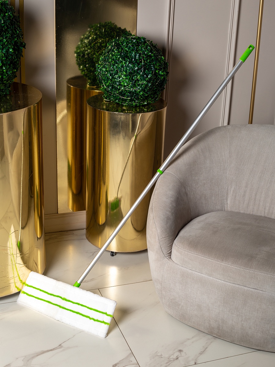 Швабра с насадкой из микрофибры и телескопической ручкой Paclan Soft Green MOP идеально подходит для максимально эффективной уборки.