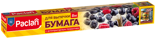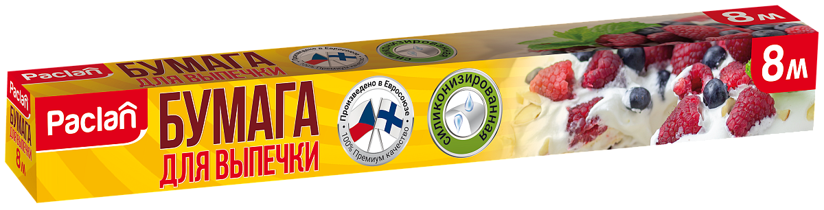 - Бумагу для выпечки Paclan производят из 100% целлюлозы со специальными добавками, придающими бумаге повышенную прочность