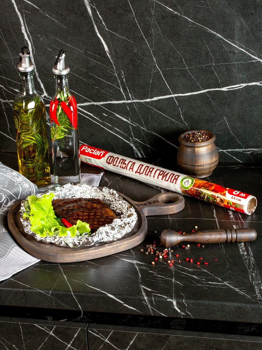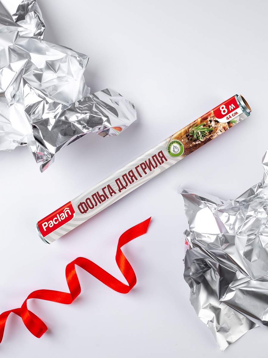 Фольга алюминиевая для гриля Paclan предназначена для хранения, упаковки пищи и приготовления блюд из мяса, рыбы, птицы, овощей на гриле, углях, в духовом шкафу.