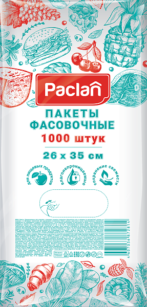 - Пакеты фасовочные Paclan, 26х35 см, 1000 шт.