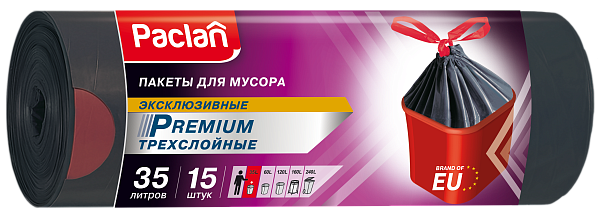 - Пакеты для мусора Paclan Premium 35 л, 15 шт.