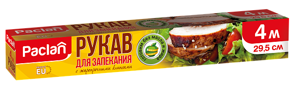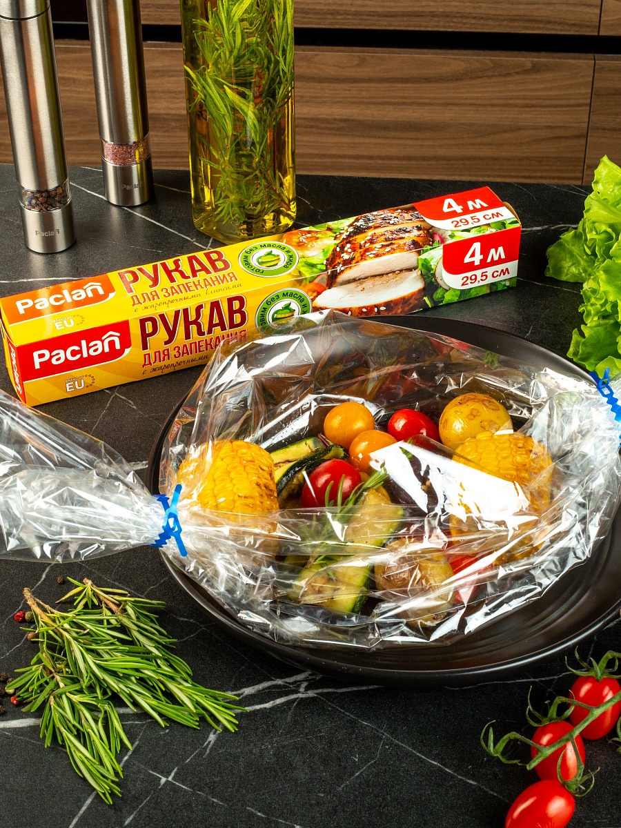 Рукав для запекания с жаропрочными клипсами Paclan создан для реализации кулинарных идей здорового питания. Приготовленные в рукаве, без масла и жира продукты, сохраняют максимум пользы, вкуса и аромата.