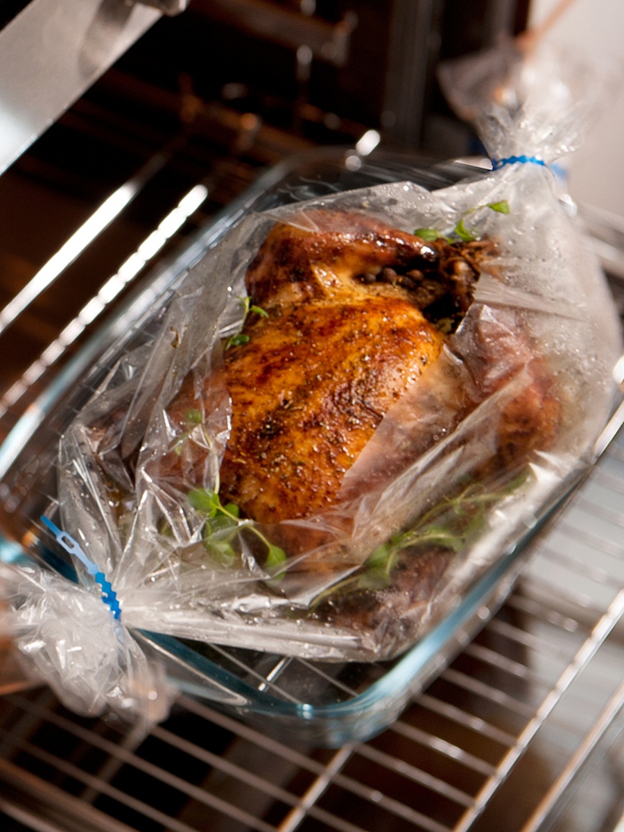 - При использовании рукава для запекания, посуда и духовка остаются чистыми, это существенно экономит время и моющие средства