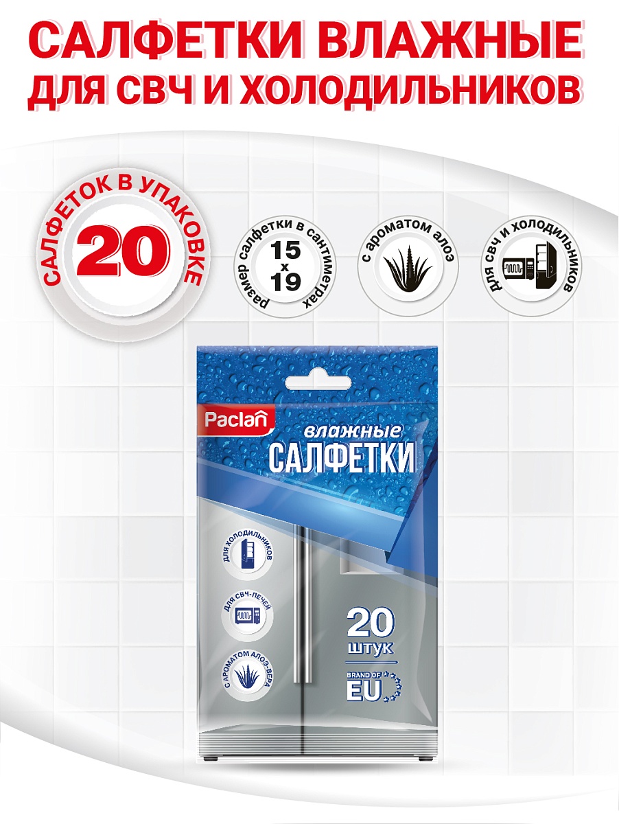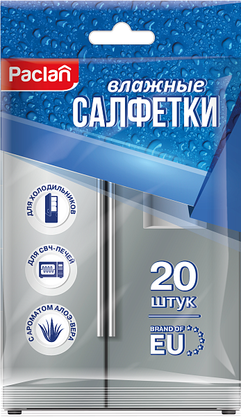 - Салфетки влажные для холодильников и СВЧ Paclan, 20 шт.