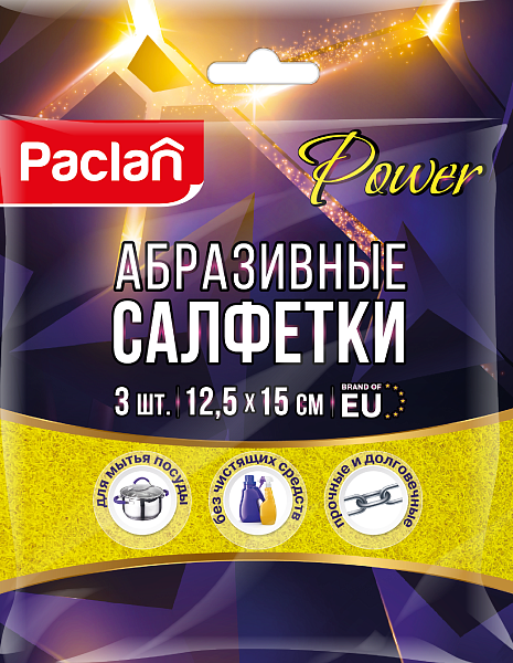 Салфетки абразивные Paclan Power произведены из высококачественной абразивной фибры с использованием особой технологии производства, применяются для мытья сильно загрязненных поверхностей.