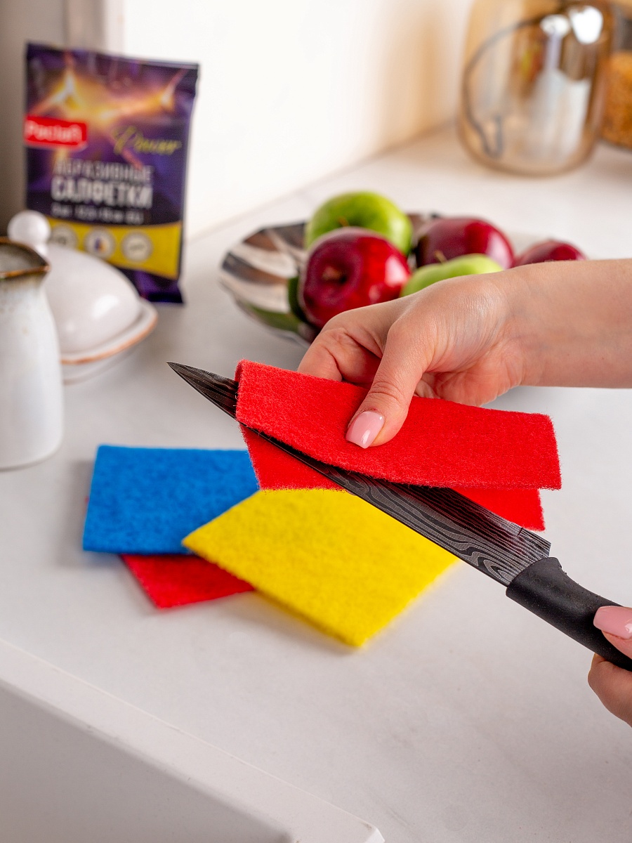 - Абразивные салфетки имеют оптимальный размер для уборки
