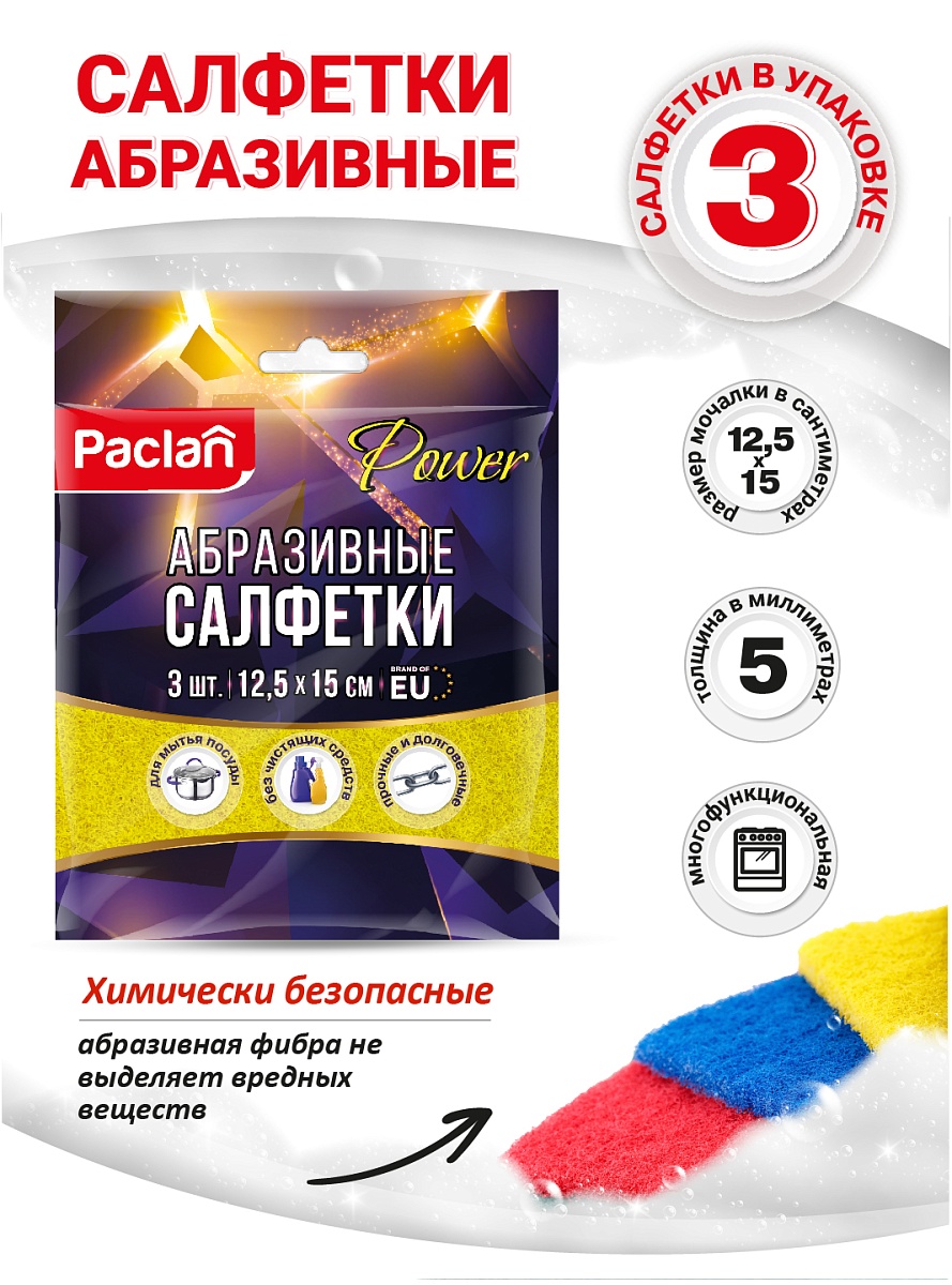 - Салфетки абразивные Paclan Power, 12,5х15 см, 3 шт.