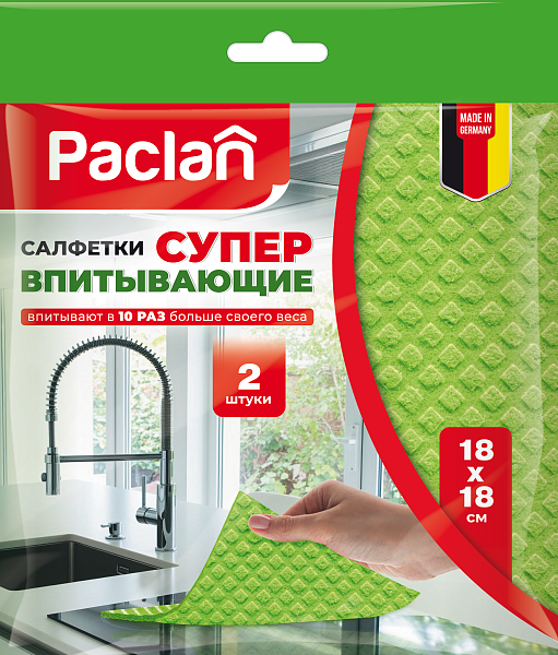 Салфетки супервпитывающие, губчатые Paclan созданы специально для кухни: мытье посуды, влажная очистка столешниц, плиты, кафеля, раковины - они справятся со всем!