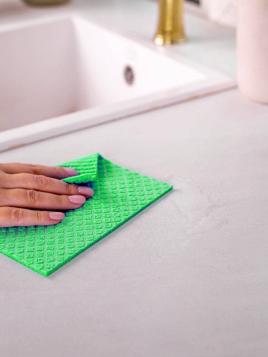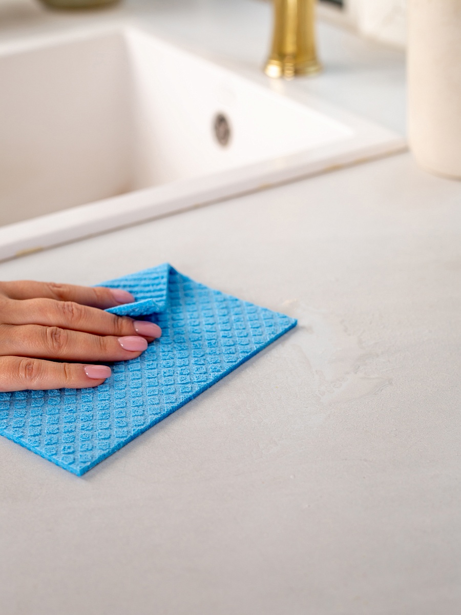 - Особая пористая структура в губчатых салфетках способствует легкому очищению и внутри них не размножаются бактерии