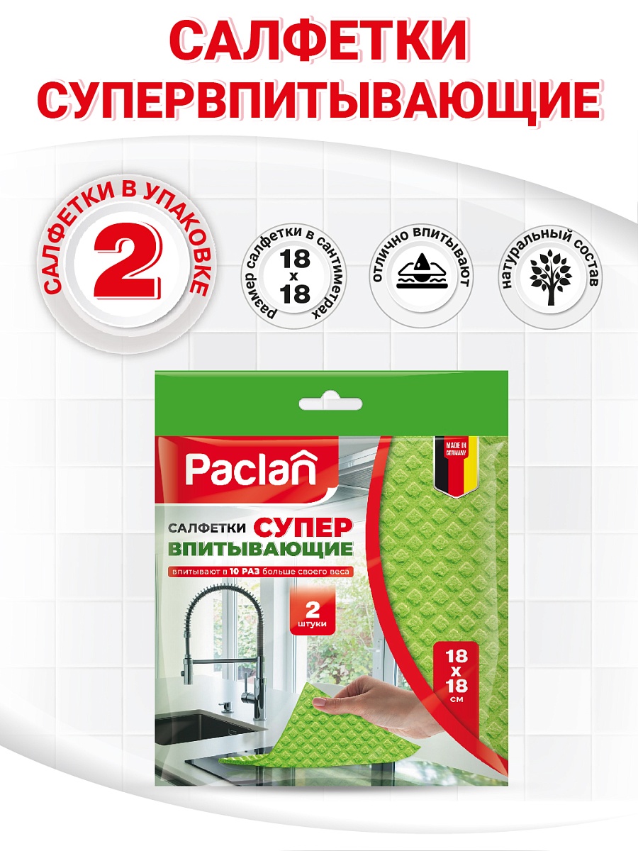 - Впитывают как губка: Пролили чай? Собрали пыль? Влажная уборка? Салфетки Paclan впитают влагу, соберут всю грязь и не оставят после себя назойливых ворсинок.