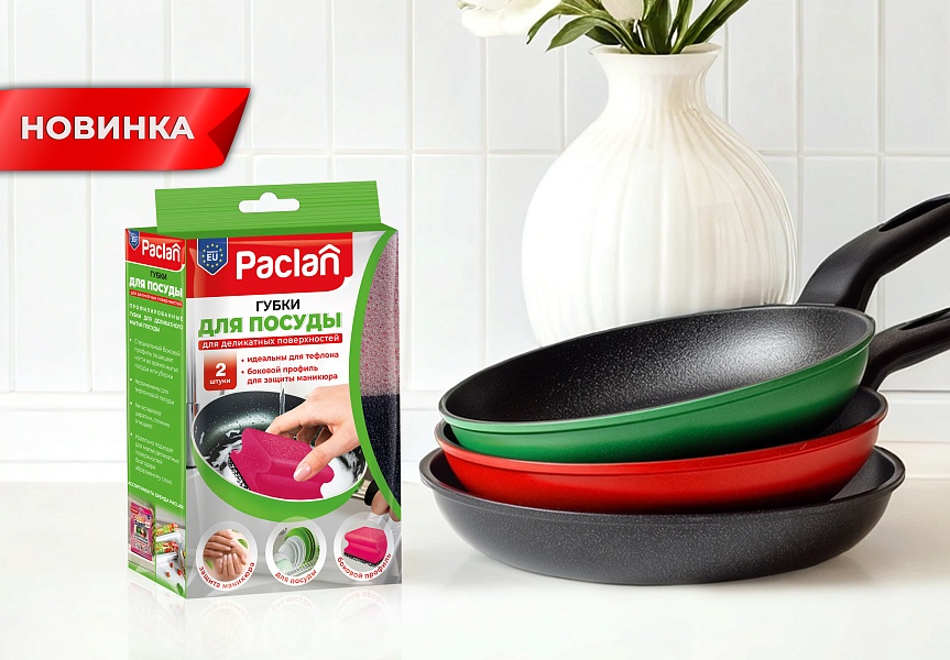 Профилированные губки для посуды Paclan в обновленном цвете и дизайне упаковки